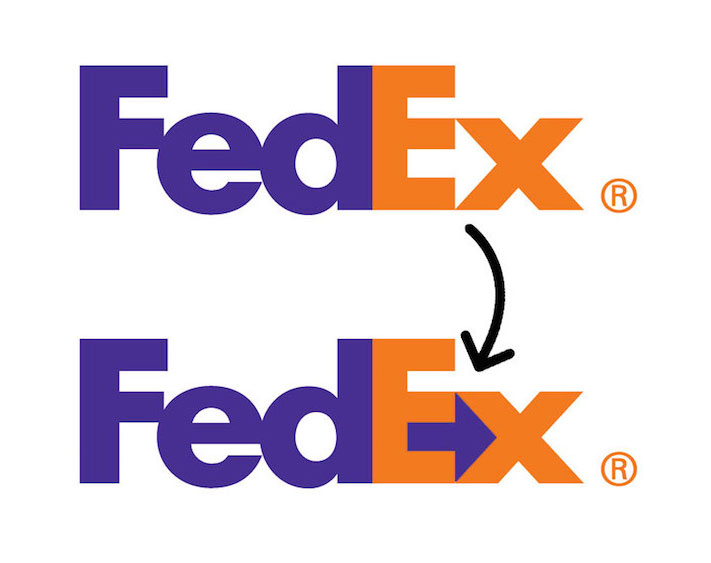 - FedEx: ‘ s Werelds bekendste koeriersdienst FedEx heeft een simpel en herkenbaar logo. Toch staat er een verborgen symbool in dat je waarschijnlijk nog nooit is opgevallen. Tussen de ‘e’ en de ‘x’ zie je een pijl. Vooruit met snelheid en precisie, is de betekenis daarvan.